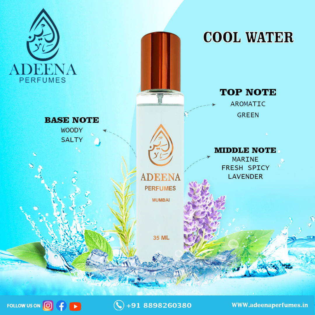 Cool Water is a Aromatic Aquatic fragrance for men. Top notes are Sea water, Lavender, Mint, Green Notes, Rosemary, Calone and Coriander; middle notes are Sandalwood, Neroli, Geranium and Jasmine; base notes are Musk, Oakmoss, Cedar, Tobacco and Ambergris.