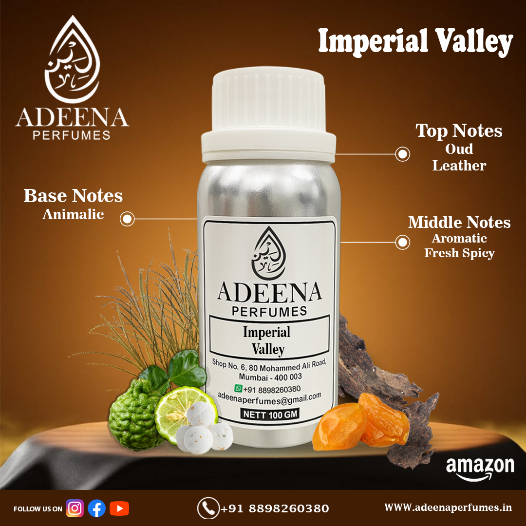 Imperial Valley is a Oriental Woody fragrance for women and men. Top notes are Sicilian Bergamot, Pink Pepper and Davana; middle notes are Agarwood (Oud), White Amber and Rosemary; base notes are Leather, Musk and Haitian Vetiver.