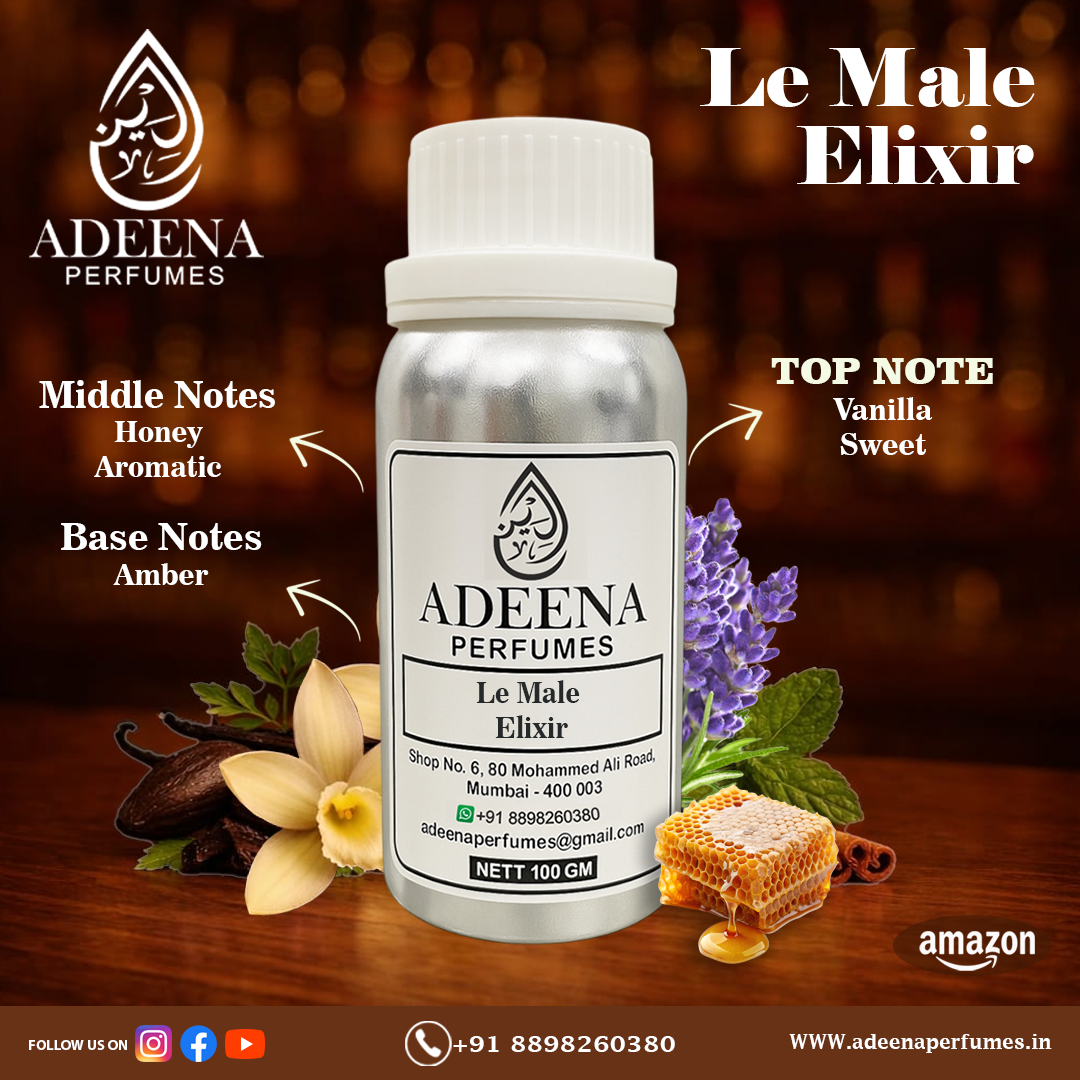 Le Male Elixir is a Oriental Fougere fragrance for men. Top notes are Lavender and Mint; middle notes are Vanilla and Benzoin; base notes are Honey, Tonka Bean and Tobacco.